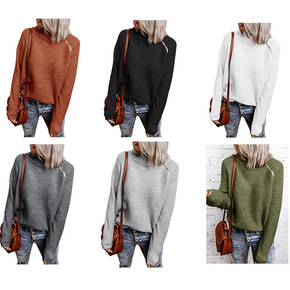 2021欧美新款毛衣纯色拉链针织上衣亚马逊独立站女...