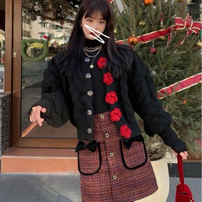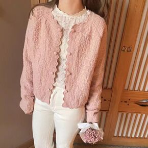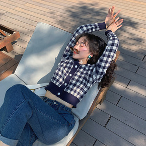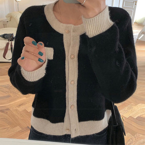 小香风短款开衫针织外套女韩版秋冬新款复古慵懒宽松外...