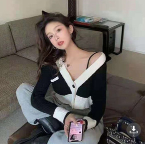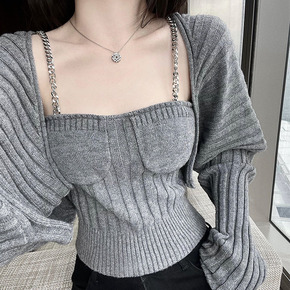 【迷人锁骨杀】针织开衫毛衣外套女春秋新款链条吊带上...