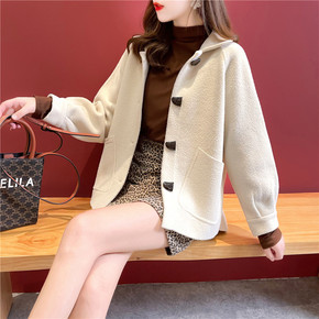 牛角扣毛呢外套女秋冬季2021新款小个子宽松短款洋...