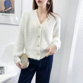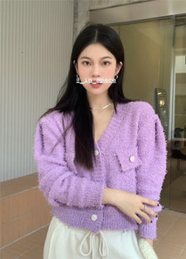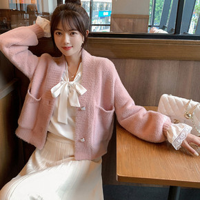 针织开衫外套女短款宽松2020年新款仿水貂绒毛衣甜...