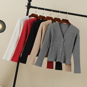 2021短款毛衣女小外套春秋季新款针织开衫修身显瘦...