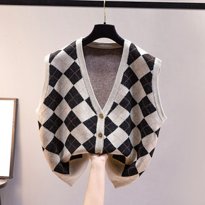 v领提花针织马甲背心外套女士秋冬季外穿韩版针织开衫...
