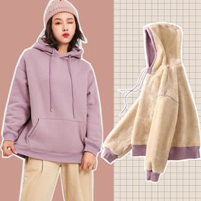 包邮秋冬加绒加厚羊羔毛绒INS卫衣女学生韩版潮宽松...