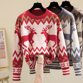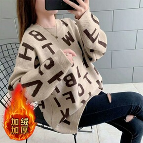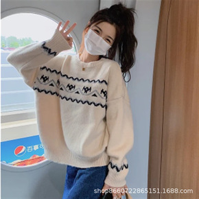 女装2021秋季新款套头针织衫毛衣女秋冬慵懒宽松条...