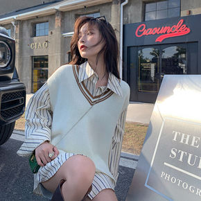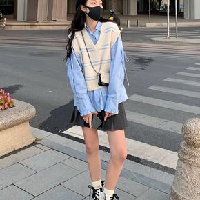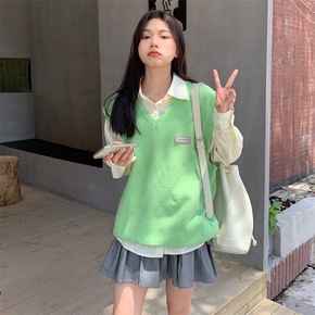 毛线针织马甲背心女2021秋季新款韩国chic宽松...