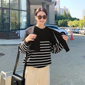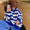 韩版减龄学院风披肩毛衣女秋季外穿加厚条纹圆领套头针...