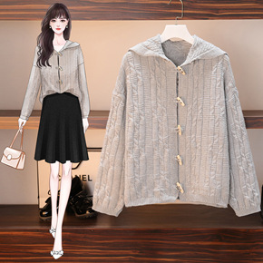 韩版学院风毛衣外套宽松洋气慵懒风大码时尚潮针织外搭...