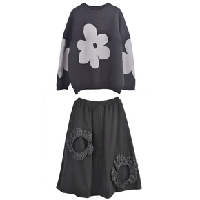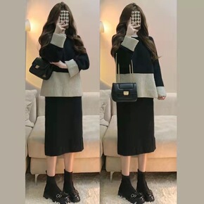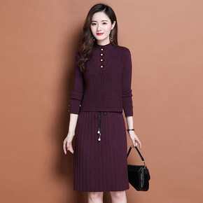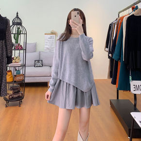 2021秋冬中长款毛衣裙两件套小香风喇叭袖针织木耳...