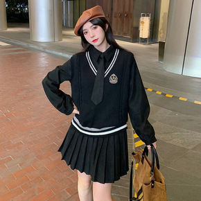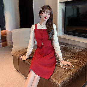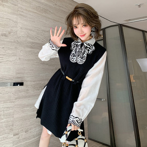 2021秋冬新品针织长袖打底衫+星星刺绣毛呢背心裙...