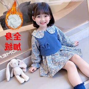 女童毛衣碎花裙两件套女宝宝秋装套装2022韩版春秋...