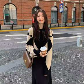 别致高级感赫本风法式针织打底配大衣冬季连衣裙202...