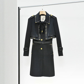 2021秋冬季新款黑色欧货英伦风毛呢外套背心连衣裙...
