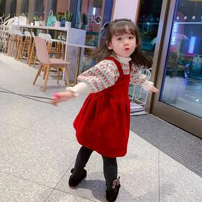 女童秋装洋气两件套2022年春秋新款韩版灯芯绒背带...