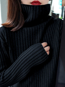 黑色加厚打底洋气内搭大码高领毛衣女冬宽松打底衫秋冬...