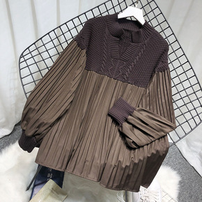 皮袖打底衫女冬修身加绒内搭针织配皮的羽绒棉袖加厚毛...