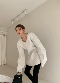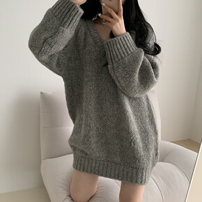 宽松V领大毛衣女2021春秋装显瘦百搭中长款慵懒风...