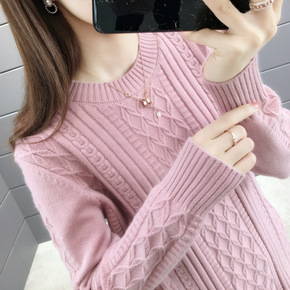 2021秋冬女装中长款长袖圆领加厚毛衣纯色内搭显瘦...