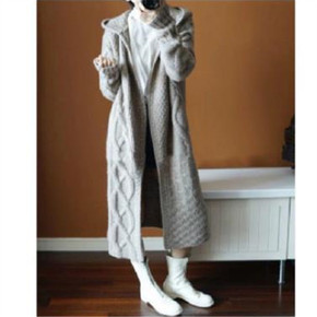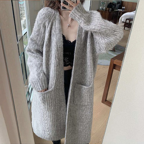 羊绒手感软糯中长款针织毛衣开衫女秋冬新款宽松显瘦过...
