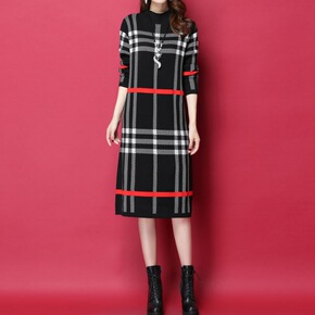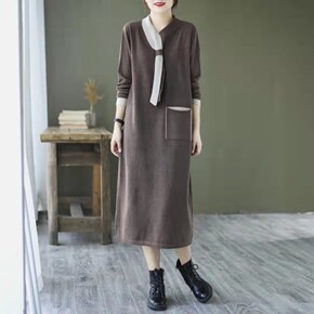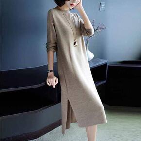 新仿针织连衣裙宽松显瘦开叉中长款打底衫气质时尚裙休...