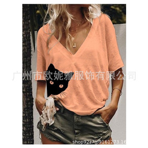 2022春季外贸新款上衣女t恤欧美纯色V领长袖卫衣...
