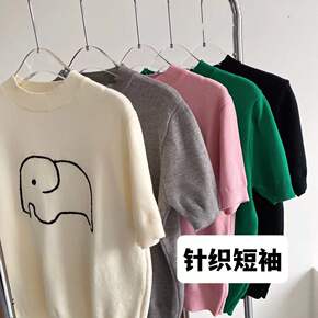 圆领防晒长袖T恤女夏韩版宽松显白薄款针织空调罩衫批...