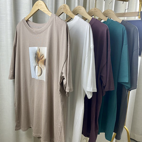 纯棉短袖 夏季新品极简风落肩款字母印花百搭宽松休闲...