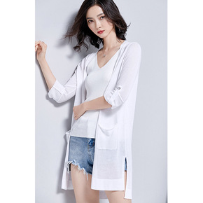 冰丝针织衫开衫女中长款防晒衣外套春夏季薄款镂空披肩...