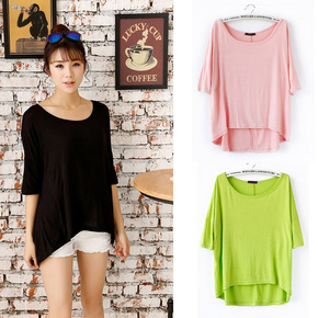 女装春夏新款韩版简约半袖t恤衫纯色显瘦短袖蝙蝠衫宽...