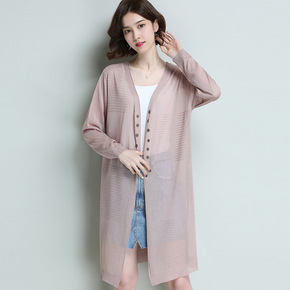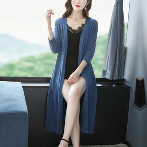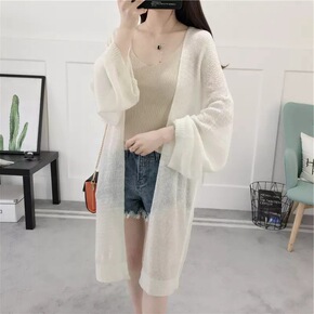 跨境电商春夏季镂空宽松长袖中长款针织开衫女薄款外套...