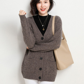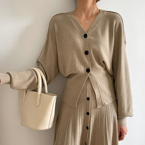 韩国雪莱绒秋冬针织开衫V领毛衣外套半裙A字中长裙时...