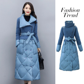 拼接羽绒棉服女2020年新款冬季韩版宽松收腰中长款...