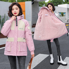 中长款派克服连帽棉衣女2021冬季新款工装宽松羽绒...