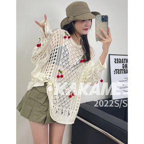 kakamee夏十三行樱桃防晒镂空纯欲风针织衫毛织...