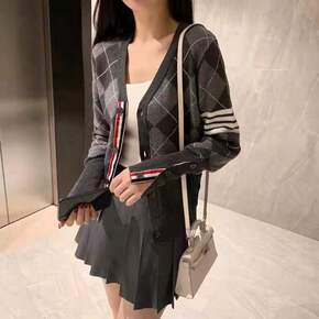 亮丝小香风外搭针织衫春秋薄款2022新款V领单排扣...
