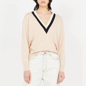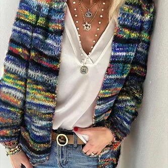 复古大翻领毛衣外套麻花撞色条纹针织开衫女装春季新款...