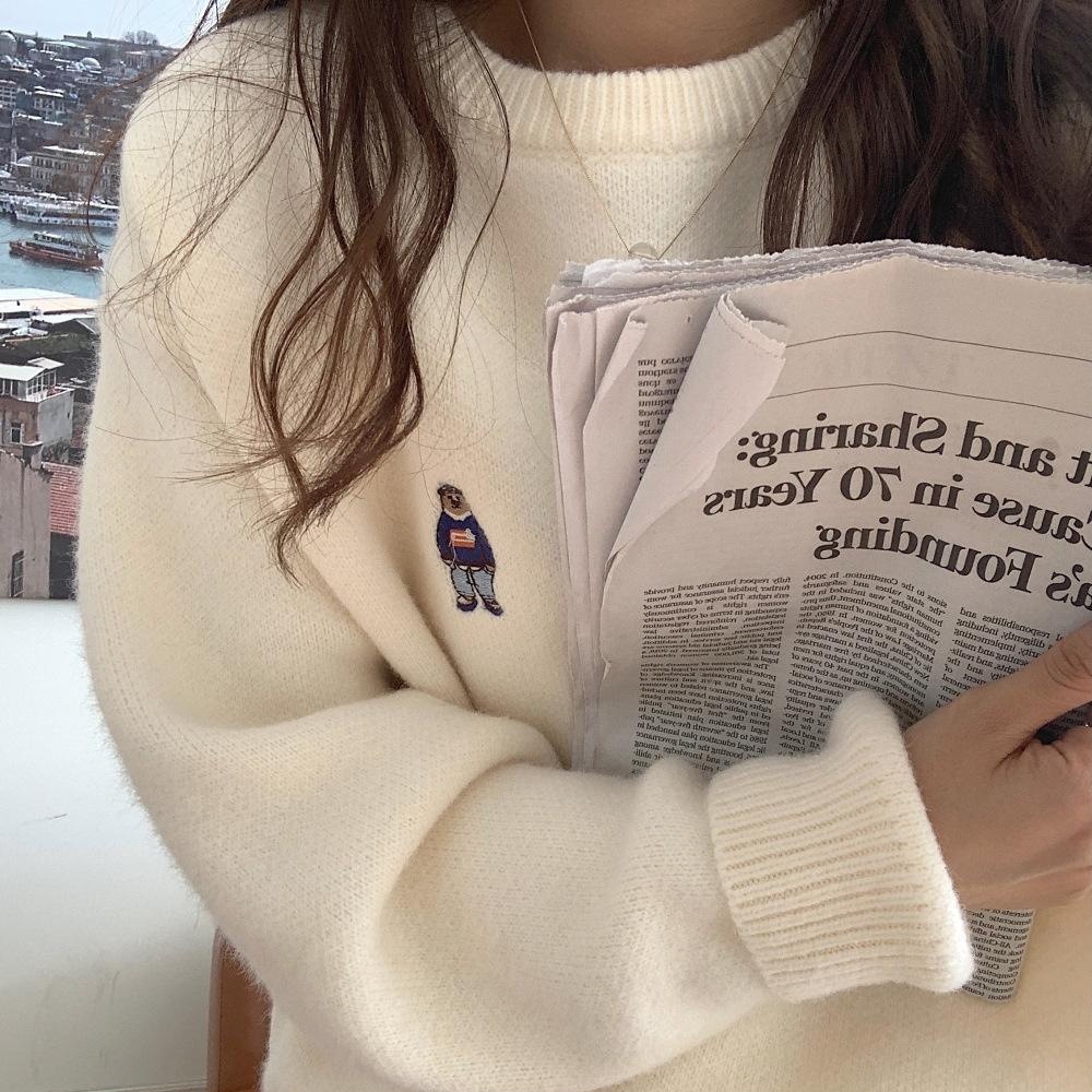 Lin girl韩新款小熊刺绣套头毛衣外套女卡通针...