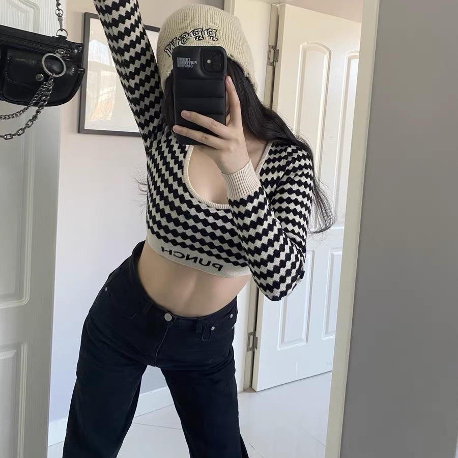 PUNCH 甜酷一整个就给拿捏住 菱格露脐短款长袖...