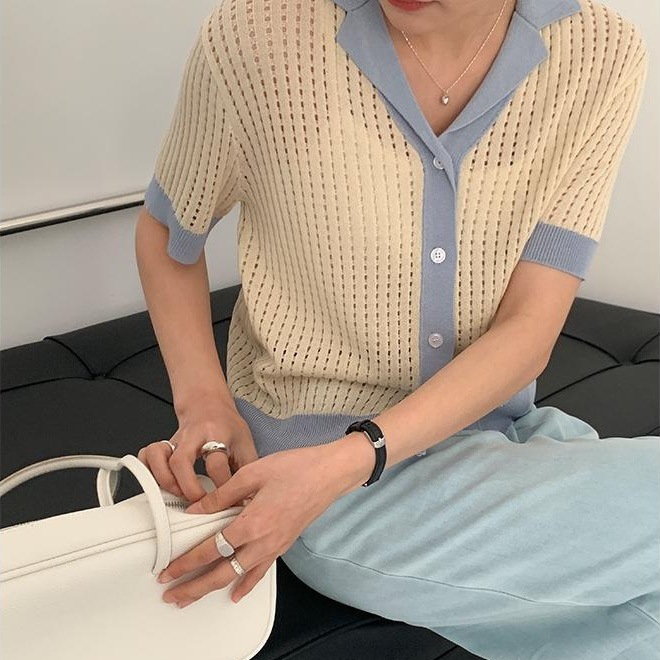 韩国东大门女装小香风撞色外套针织衫2021秋季气质...