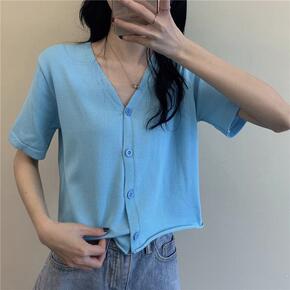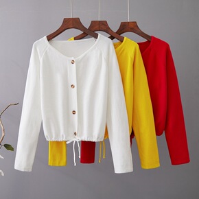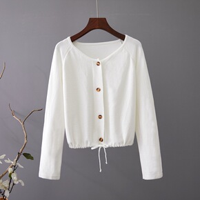 2021外套女韩版宽松学生百搭纽扣针织开衫女上衣纯...