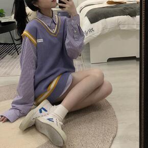学院风针织领马甲女装宽松韩版春秋季2021新款外搭...