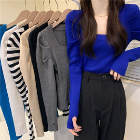 早秋韩系上衣女装针织衫2022年新款性感一字肩长袖...
