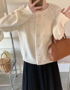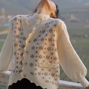 短款毛衣开衫春装2022新款宽松慵懒风时尚白色长袖...