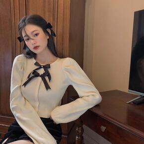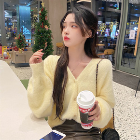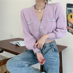 「私密款」秋冬新品韩版简约小香风毛衣开衫短款休闲内...