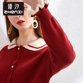 翻领羊毛开衫毛衣女早秋冬装2021新款短款外搭妈妈...
