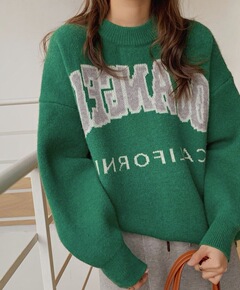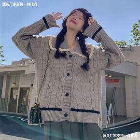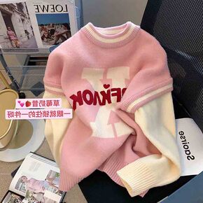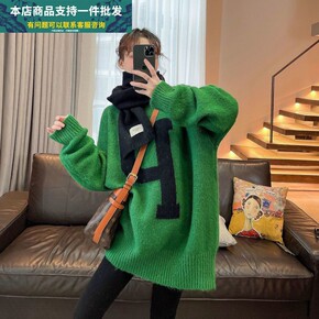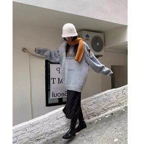 毛衣女秋冬2021年新款复古日系慵懒字母印花针织衫...