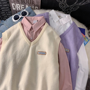 外搭jk马甲背心女针织衫秋冬慵懒甜美别致春秋v领毛...