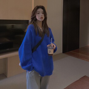 2021新款秋冬V领洋气毛衣宽松百搭外穿套头慵懒风...