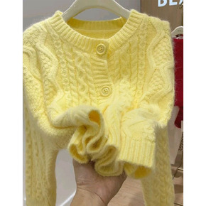 秋冬针织衫开衫外套小香风上衣马海毛黄色毛衣2021...
