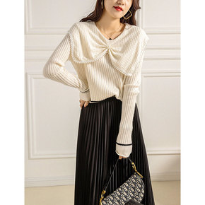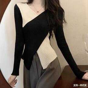 设计感小众不规则长袖针织衫女装秋冬季毛衣2021新...